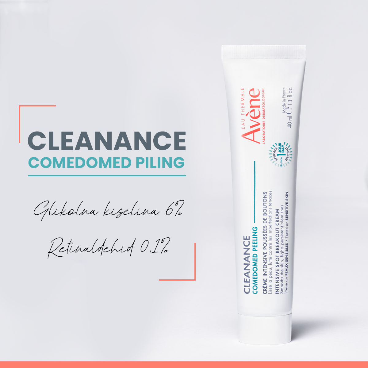 Comedomed PILING Intezivna krema je novi proizvod protiv izbijanja akni. Djeluje na sve vidljive nepravilnosti kože sklone aknama, s jedinstvenom i ultra učinkovitom formulom zahvaljujući kombinaciji dermatoloških djelatnih sastojaka: